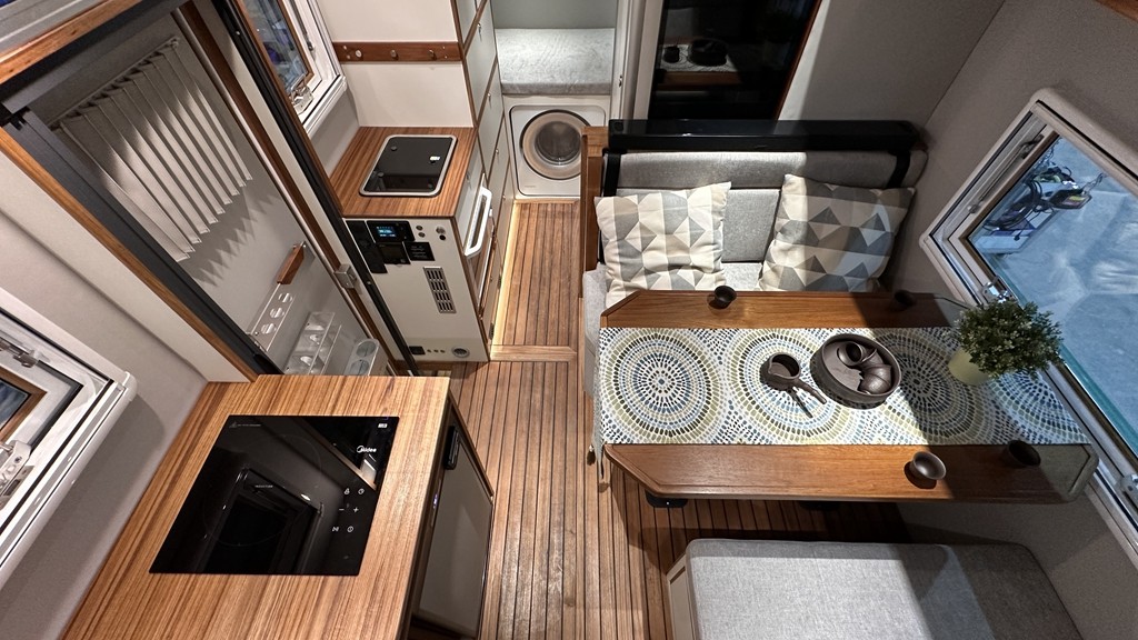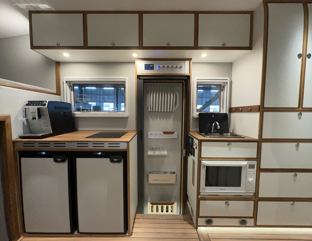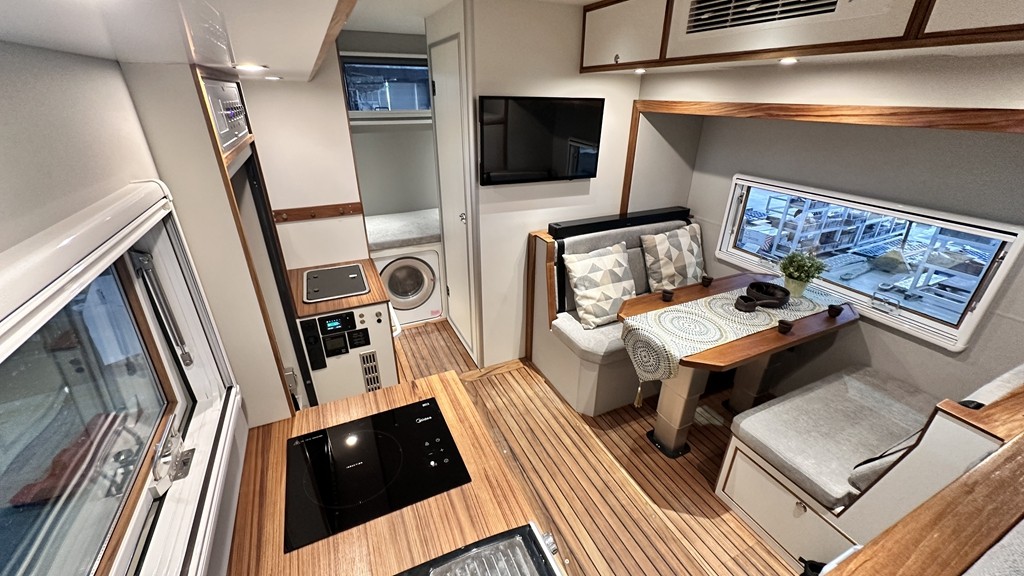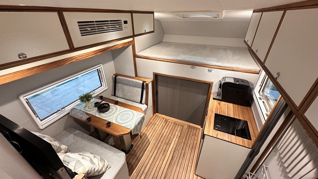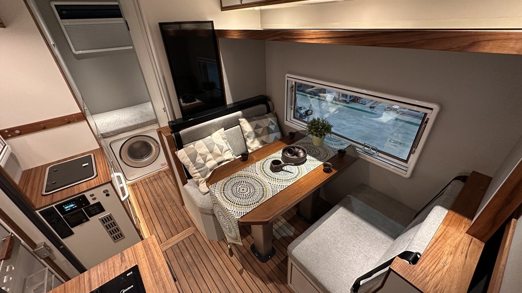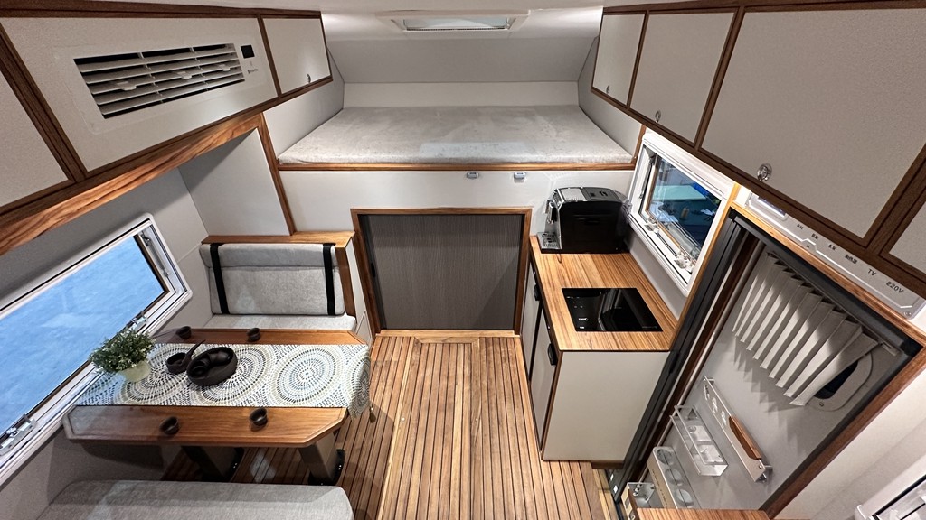 内饰材质:游艇级柚木地板、瑞典dometic天窗,高端质感与实用性兼具。