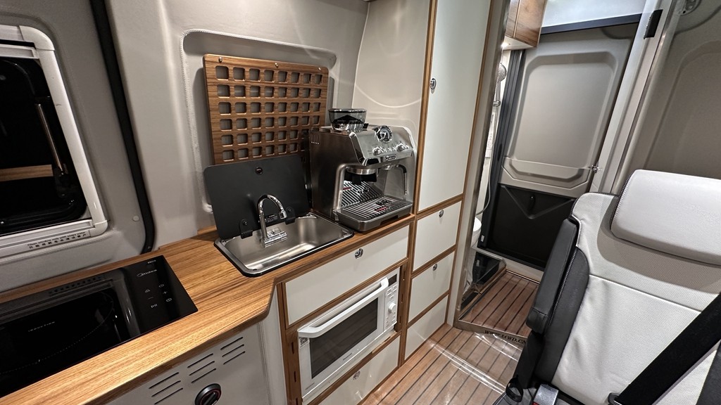 供水配置同样出色,房车专用 180l 冷水箱与 65l 灰水箱,超大容量满足日常用水需求;德国 webasto 驻车水暖加热器和房车专用电加热热水器的双热水系统配置,让你随时都能用上舒适的热水,无论是洗漱、烹饪还是清洁,都能轻松应对,为你的旅途生活提供全方位的保障。